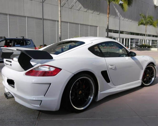 Precision Porsche gives your 2006 and up 987 Porsche Cayman a more aggressive look with this GT style rear wing. The larger rear wing gives you substantially more downforce to improve the aerodynamics at the track. The rear GT wing includes all hardware, uprights, and wing blade for a perfect fit. The spoiler replaces your factory actuated wing which means you may have to have it deactivated with a Porsche PIWIS tool so you do not get a warning light on your dash. The wing blade comes unpainted. This part ships via oversized freight only.
